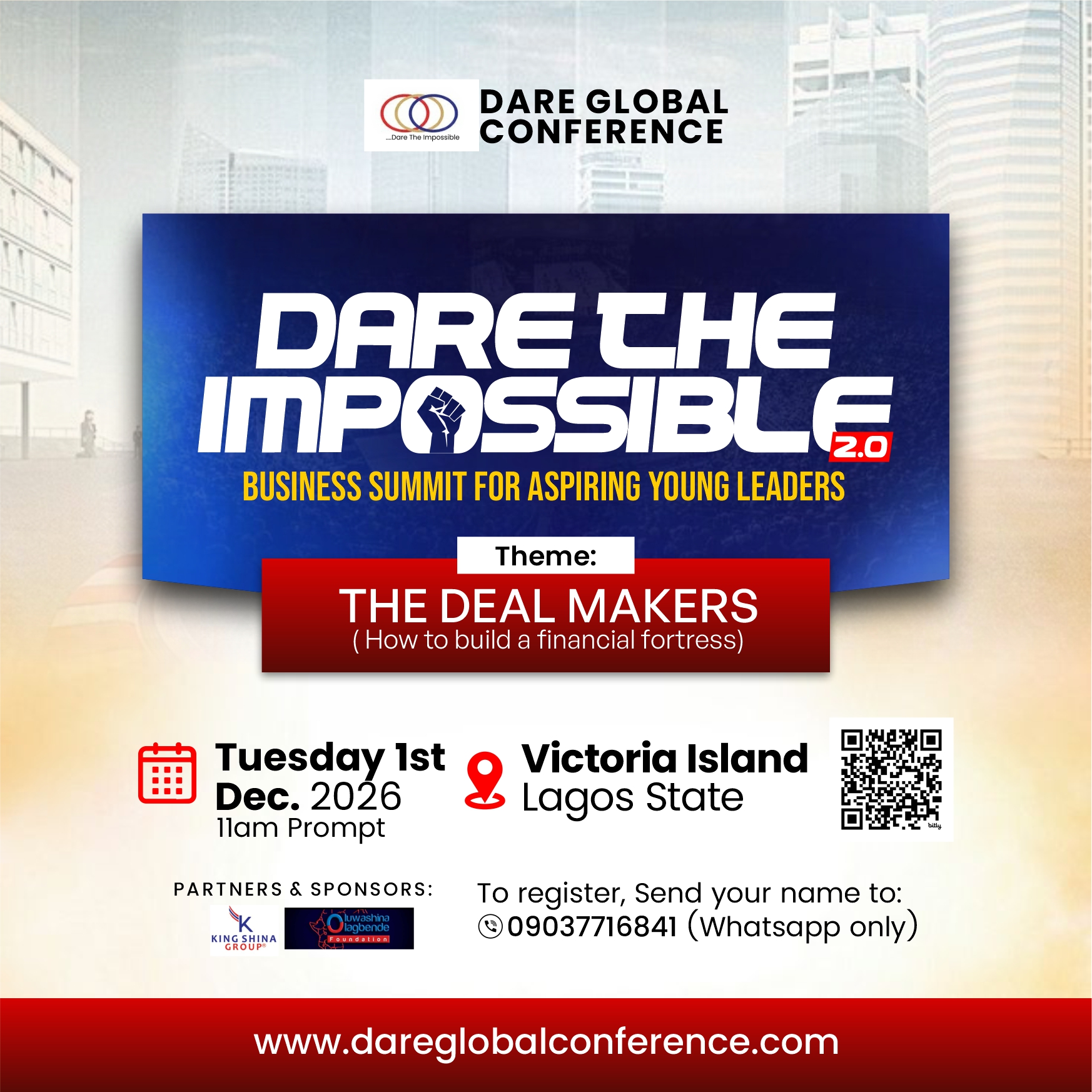 The Dare Global Conference presents a golden opportunity for young, aspiring business leaders to attend a business summit, especially those eager to break boundaries and shatter limits in the business and leadership arena. This event is designed to equip, empower, and elevate young business minds who are ready to revolutionize global practices.